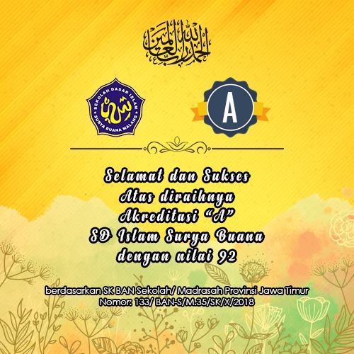 Dengan kerja keras dan kerja bersama antar komponen dalam sekolah, alhamdulillah SD Islam Surya Buana bisa mempertahankan predikat unggul. Terimakasih kepada para pihak yang telah ikut berjuang. Semoga predikat yang telah dicapai membawa kebaikan untuk kita semua. Tentunya, SD Islam Surya Buana akan terus berproses untuk menjadi sekolah yang sesuai dengan visi dan misinya. Menjadi sekolah yang menyenangkan, mengasyikkan, dan mencerdaskan.