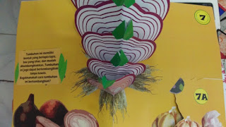 Sedangkan pada bagian yang bertuliskan 7a, merupakan halaman yang dapat dibuka, dan di dalamnya menunjukkan lebih jelas bagaimana bawang berkembangbiak. Selain itu pada Gambar 4, menunjukkan cara perkembangbiakan tumbuhan arbei dengan vegetatif alami yaitu geragih. Siswa bernalar untuk menjelaskan arti geragih pada perkembangbiakan arbei. Buku ini tidak memberikan penjelasan atau informasi selengkap-lengkapnya dari tumbuhan, melainkan hanya informasi singkat tentang tempat hidup dan kegunaan dari tumbuhan tersebut.