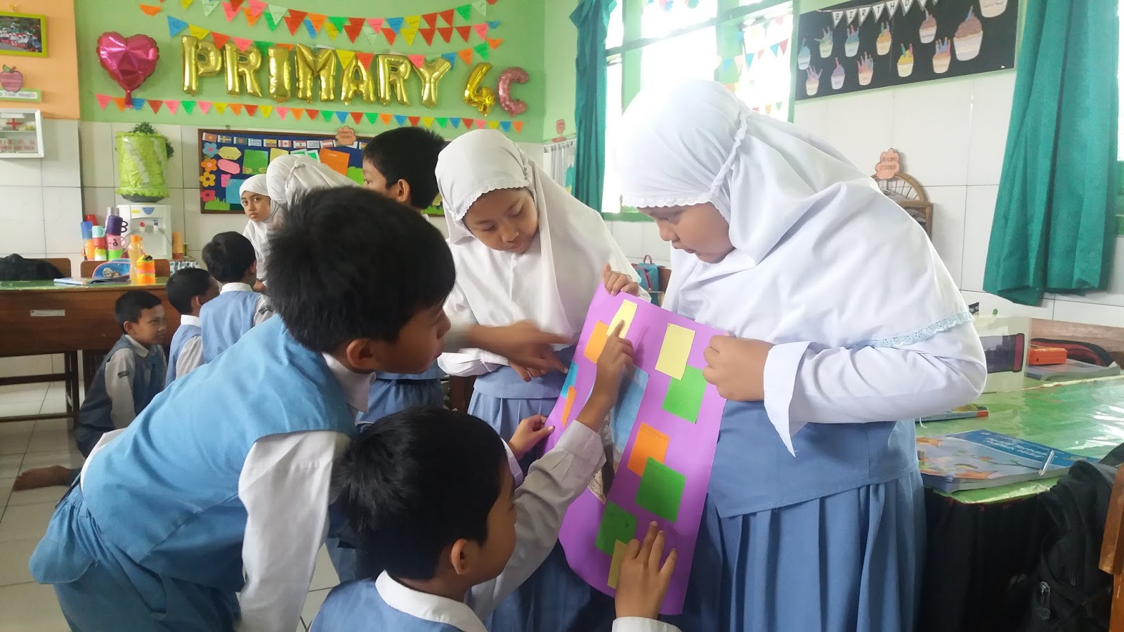 Dengan kegiatan pembelajaran seperti ini, siswa merasa seperti bermain. Mereka bebas berkreasi menempel pertanyaan dan jawaban mereka. Mereka juga diberikan kesempatan untuk berkomunikasi secara langsung dengan teman mereka. Aktifitas berjalan berkeliling juga menambah semangat mereka, apalagi bagi siswa yang cenderung sangat aktif dan suka bergerak. Selain itu, mereka juga telah belajar banyak hal dalam sekali permainan. Mereka telah belajar cara menulis pertanyaan yang baik, melakukan wawancara, menambah pengetahuan tentang cara peduli terhadap makhluk hidup, serta mempresentasikan hasil diskusi mereka. Oleh : Shellya Khabib Dirgantari, S.Pd.I