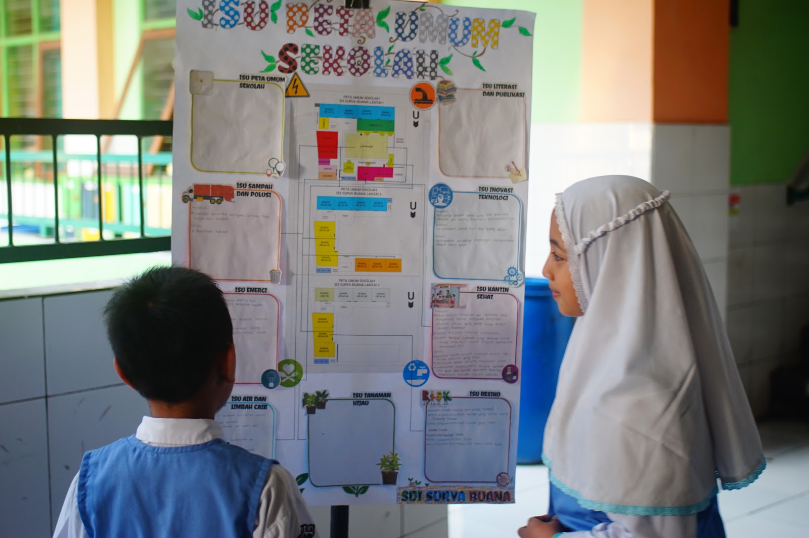 Langkah pertama dari pemetaan umum sekolah ini membentuk tim yang terdiri dari dua guru dan melibatkan dua siswa. Setelah itu siswa dikumpulkan serta diberi pengarahan akan pemetaan sekolah. Dengan berkeliling seluruh area sekolah siswa mulai mencari masalah-masalah yang ada dari sembilan isu tersebut, mencari potensi yang bisa dimanfaatkan dan solusi yang bisa menyelesaikan masalah. Lalu mereka mencatat dan memuat dalam mapping kecil yang menarik.