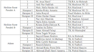 Jenis perlombaan yang terdapat dalam kegiatan ini ada 6 lomba yang sangat seru dan juga mendidik pastinya. Lomba-lomba tersebut adalah hafalan surat pendek, hafalan doa sehari-hari, adzan, cerdas cermat, olimpiade matematika, dan mewarna. Tak ada satu pun jenis lomba yang tidak diminati. Akan tetapi, yang paling diminati oleh peserta adalah lomba mewarna, yang setiap tahunnnya selalu mendapatkan peserta lomba terbanyak.
