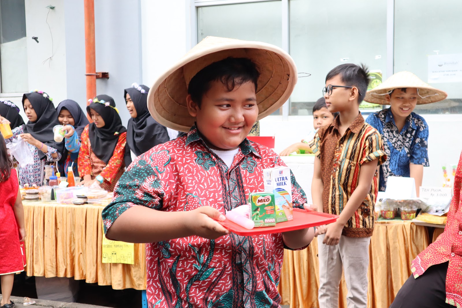 Terdapat 4 stand dalam Business Day kali ini. Stand pertama diisi kelas 6-A, stand kedua diisi kelas 6-B, stand ketiga diisi kelas 6-C dan stand keempat diisi kelas 6-D. Jika kelas 1-5 mengenakan kostum mancanegara, maka kelas 6 memilih ciri khas bangsa Indonesia, yaitu batik. Agar lebih menarik, setiap stand menunjukkan iconnya masing-masing dengan mengenakan property yang berbeda. Kelas 6-A mengenakan propertycaping yang melambangkan Indonesia adalah negara agraris. Selain untuk icon, fungsi caping tersebut adalah sebagai pelindung dari panas matahari karena stand bazar disetting di tempat terbuka tanpa terop di atasnya. Kemudian kelas 6-B yang merupakan kelas putri, memakai property yang menjadikan penampilan mereka tampak lebih cantik dan anggun bagai putri, yaitu flower crown atau mahkota bunga, yang dulunya lebih sering digunakan oleh wanita saat upacara pernikahan. Kemudian property kelas 6-C yang terdiri dari anak putri, juga tak ingin kalah yaitu bando pompom. Apa itu pompom? Pompom adalah benda lucu yang berbentuk bulat dan berbulu yang saat ini juga sedang hits. Beberapa siswa kelas 6-C ada yang tetap memilih asli bando pompom sesuai desain aslinya, ada juga yang memodifikasi pompom dengan melekatkan pada topi. Stand terakhir adalah kelas 6-D dengan propertydari kreasi kertas aneka warna yang bertuliskan nama kelompok beserta nama produk makanna/minuman yang mereka jual. Dengan dilengkapi property yang demikian, semakin menunjukkan bahwa mereka adalah siswa-siswi yang mempunyai kreativitas yang sangat tinggi.