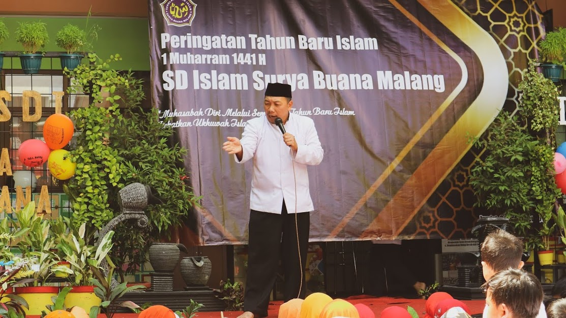 Jumat, 6 September 2019, Siswa-siswi SD Islam Surya Buana Malang melaksanakan kegiatan peringatan Tahun Baru Islam (1 Muharram 1441 H). Kegiatan ini bertujuan untuk mengajarkan kepada siswa agar selalu ingat kepada sejarah hijrahnya Nabi Muhammad SAW dari Kota Makkah menuju Kota Madinah. Selain itu, kegiatan yang bertemakan “Muhasabah Diri Melalui Semangat Tahun baru Islam Perkuat Ukhuwah Islamiyah” dikonsep agar siswa-siswi SD Islam Surya Buana Malang memiliki semangat juang untuk menuntut ilmu di tahun baru ini.Peringatan 1 Muharram 1441 H di SD Islam Surya Buana Malang ini diawali dengan sambutan oleh Dra. Hj. Sri Istuti Mamiek, M. Ag. selaku pembina Yayasan Bahana Cita Persada Malang. Beliau menyampaikan kepada seluruh warga SD Islam Surya Buana Malang untuk senantiasa berjuang dalam menuntut ilmu.